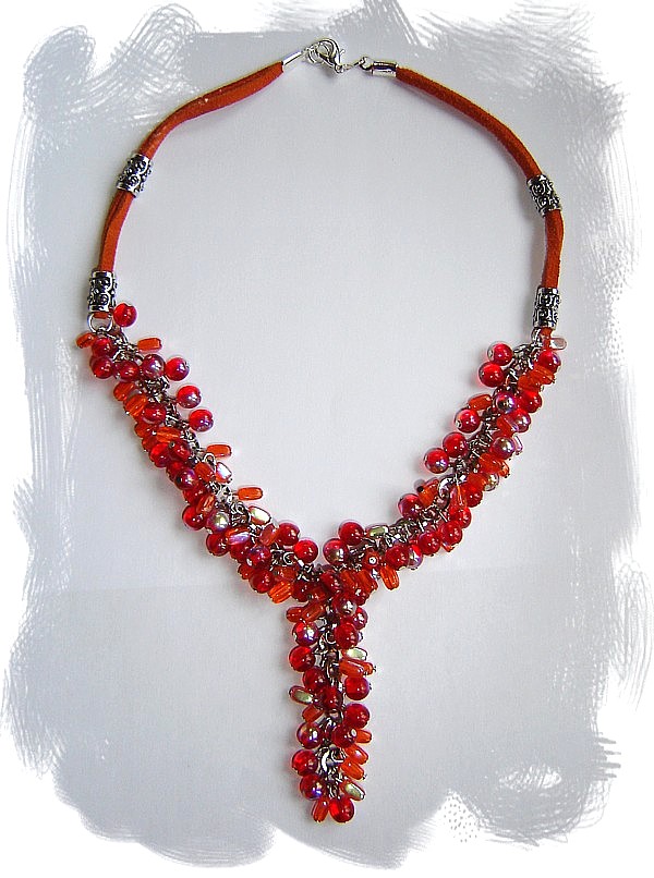 Deze schelpenknopen heb ik met verzilverd draad en ringetjes aan elkaar geketteld. | ||||